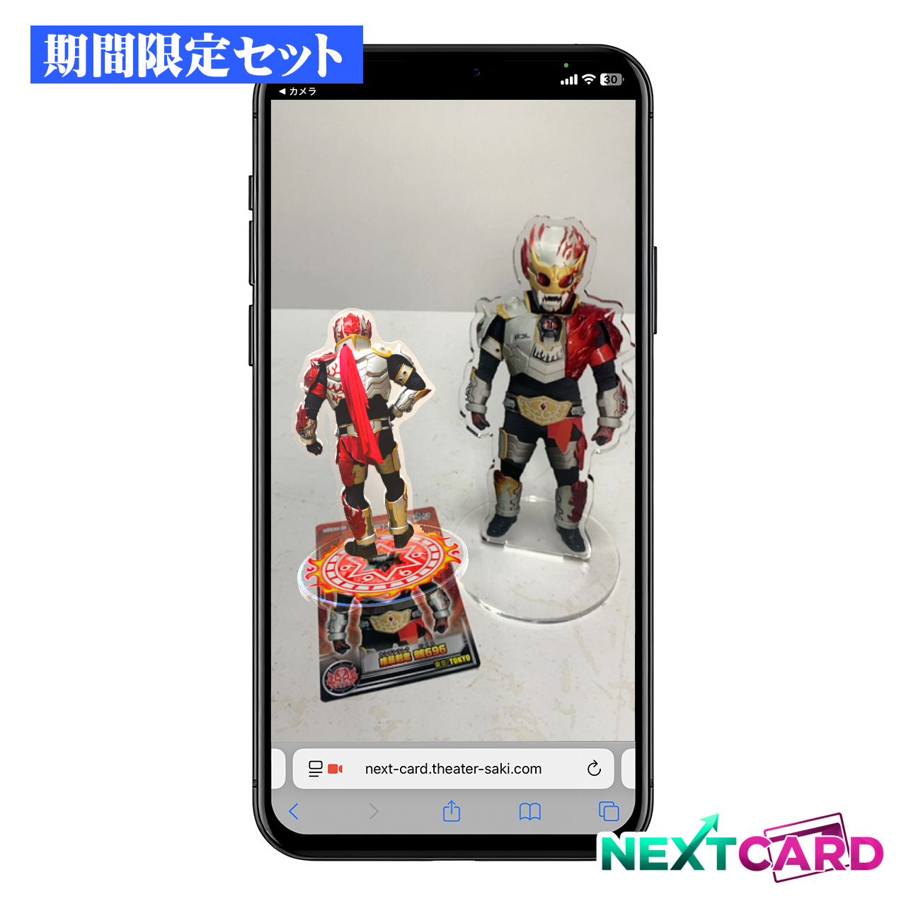 AR体験ができるネクストカード・骸696と同じデザインのアクリルスタンドを期間限定でセット販売。