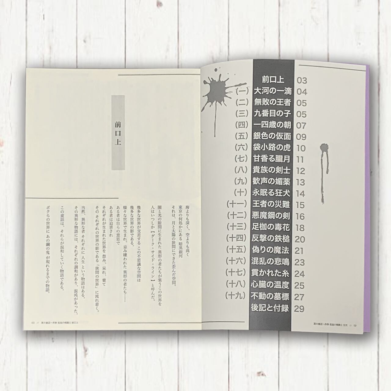 小説版「DarkSideLineストーリー」 ダークサイドラインとは様々なキャラクターたちが生きている共有空間。特定の誰かが主人公のヒーローストーリーとは違う世界観の話・・・そんな大河の第一巻です。